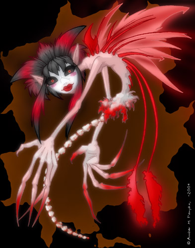 | NEW Ike: Do not trust this peacock! His tail secretly sidelines as a rider of the Apocolypse! It is evil! Ike himself however is not, and works as a bartender at a popular night club. NEW Taneeki: A RP character: Still at large. Trying to get the world to take her seriously despite her adorable impairments. NEW Niche: A RP character. Last seen trying to avoid the responsibility that she played a part in possibly destroying the world. Egyptian Gals V3: Yet another remake of this and this. Added a cow, frog, and zebra. Modified the jackal and cobra. Much fun. Chris: A RP character. Still at large, learning how to control the powers of Harbengers and the influence of healing. Sugah Shock: A RP character. Still at large, with the powers of speed and a sidekick that she would love to get rid of. Hazel: A RP character. Last seen travelling from planet to planet with some alien friends from the future. Wendy-GO: A RP character. Last seen leaving a haunted house and going on to a successful DJ career. Genda Attempt #1: A short and pudgy giraffe named Genda, same series(the themed backgrounds should be a tip) I need to work out a few kinks on this character. Stephan Attempt #1: The skink character Stephan, also from the same potential strip. (One of these days I need to put their own section up. I'm lazy) Susan Attempt #2: An improved redesign of the Susan character, a creation between me and a friend for a potential comic. Ebola: Late at night, and doing silly things to my brain, so I anthromorphized the Ebola virus. Susan Attempt #1: Failed attempt at the mouse/fox Susan. Needs more mouse. Xum Xem: A little mushroom girl and her spore pup. Children's book concept character. Tigaro V2: A revision of a very old character Tigaro. I still need to work on his design. Blargh. Masked Amusement: Just something kinda creepy and surreal...I need to lay off the muse puns |