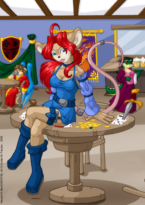 NEW Secret Santa #1: A picture I did in a Secret Santa exchange way back when ago. NEW Keesha: Image done as gift art for a wonderful webcomic. You don't see too many elephant characters. Much less bodybuilder ones. NEW Keaton the black Jackal: Fun with shadows! This was a commission for the faboo Keaton. Zinn: Yet another character of Longtails, a zombie-lioness character named Zinn. She's fun. Blinkies 1, 2, 3, I was trying to do a whole set for Soshi...sort of slacked off on that. My bad. EoI Megan: A gift art for the comic Elf-Only-Inn. Megan the elf...in a rather generic pose. Ugh I fail at poses. Inkberry Shortcake: I have no explanation for this one. I think I was on the crazy meds at the time. Gwen Evolution: A silly series of pics done for Joe, in part of a contest and in part of a cheer-up gift. His character throughout the ages. Interrogation: (Warning: Risque content) Another picture for Longtail. Um...eh heh...moving on! Jackal: I actually forget if this was a commission or a gift art. Either way, pointy axe fun for all! Mite: A picture for Soshi of her Inhuman character. Worst attempts at pants ever. I owe a better picture. Roz Taur: A picture for Longtail, though a bit silly. One of her characters done as a hampster-taur. Stubbly legs for the win. Glenda: A gift picture for rickfields of his red-headed character Glenda. The Lupingtons: ...yes they're Neopets...but I drew them for someone anyways. Don't judge me! Coke: A picture of a hodgepodge kinda shapeshifter named Coke, done for a Manawolf. Vixen 1, Vixen 2, Vixen 3: Three vixens for PottedFox's leatherwear site. (LINK) Debyrus Proposal: A commision for Debyrus, asking his now fiancee to marry him. (she said yes) Inkberry Shortcake: Don't ask...just...don't ask... Lilith: From the comic Holy Bibble, the always well um...enchanced...Lilith. (LINK) Mischa: A genie made ouf of light rubber who lives in a soda can. Always fun! Mercy: Another gift art for the comic Gossamer Commons, the Fae Mercy. (LINK) Diamond: The royal character Diamond from Usagi's comic Hidden Disguises. (LINK) Matt: Gift art for Longtail of her comic's unluckiest character Matt. (LINK) Mezumi: A gift picture for Ben of his mouse girl Mezumi. Fun attempt with backgrounds. Jo: A gift for Cheetah of their new mascot for TJA. I need to work on her design more. Outkast: Exchange image for a Michelle of her demon-kitty Outkast. Pointy and shiny. Tarra: Ryle's tigerlike girl winding up for a punch. Big kitty paws are fun to do. Kali(revised): A revision for an old friends character of the Faerie Kali. You can probably find an older version in Gallery(other)2. Hooray for art evolutions. Kyree: Done via request, a gryphon-like girl named Kyree. Lots of blue, simple background. Deer Me: A random image done of a rather interesting deer character. You don't see too many bandanna wearing characters these days. Zephyr/Yuumei: Silverfox's characters...where Zephyr is probably going to kill me for doing this if he actually can get away from Yuumei. Krea: Another picture for Equidna of his wonderful alien gal Kria as she spreads her message of love to the world. Scarlet: A random gift for Jive Guru of his character Scarlet...a squirrel girl who is insanely difficult to draw in that style. Nezumi: A gift piece for Benny who has always done nice pictures for me. His mouse-gal Nezumi sitting in Lost Lake. RO-Deathstrike: I did a bunch of Ragnarok Online fanart of friends characters a while ago. This particular one is of a monk who's name I still cannot pronounce. RO-Toxic: A Ragnarok Online assassin who goes by the name of Toxic. RO-Miyabi: Another Ragnarok Online assasin called Miyabi with her pet and her blades. RO-Bunny: A Ragnarok Online priestess by the name of bunny with her pet devilruchi. Phleona: A non-fiery pheonix named Phleona. Birds are always fun...and a bit toony. Diana/Reynard: Another gift art for Seth Triggs of his main couple, Diana and Reynard. Chibis Versus Reworks: The Legend...The massive detail...the handcramps from doing it all in coloured pencil. It has a lot going on in it. Lacey: A trainwreck character in Seth Triggs Buddies in Big Places...the lapine Lacey. Kameko: A gift for a wonderful fan Meko-Meeks after she drew some art for me. I love her wingish ears so I couldn't resist. |