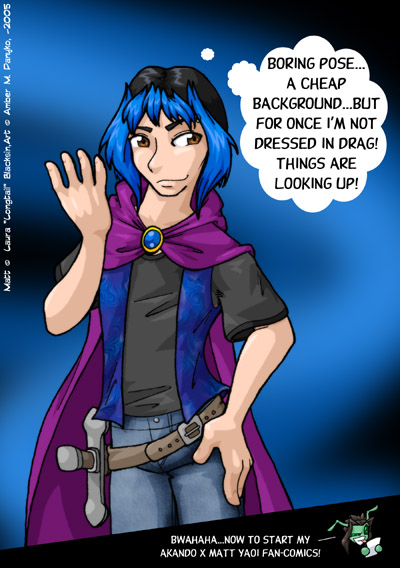 All the art here is from September 20 2004 to today done for other people. I put the newer stuff at top now so come back now and again to see new things. Disclaimer The characters in this archive do not belong to me unless stated otherwise but rather belong to the individuals who claim right to these characters. The only thing I claim is the art itself that I spent the time drawing the picture itself. |