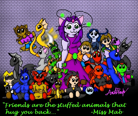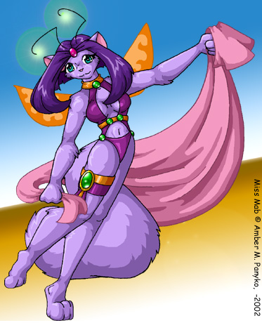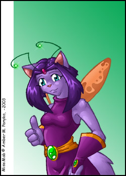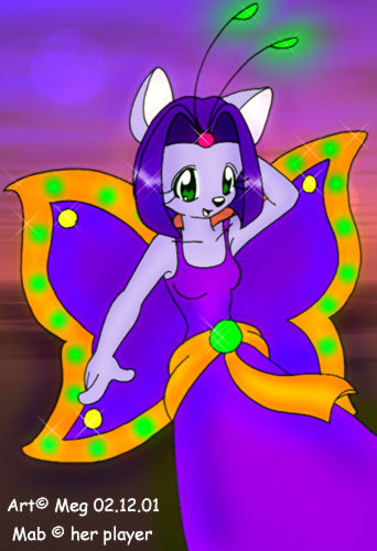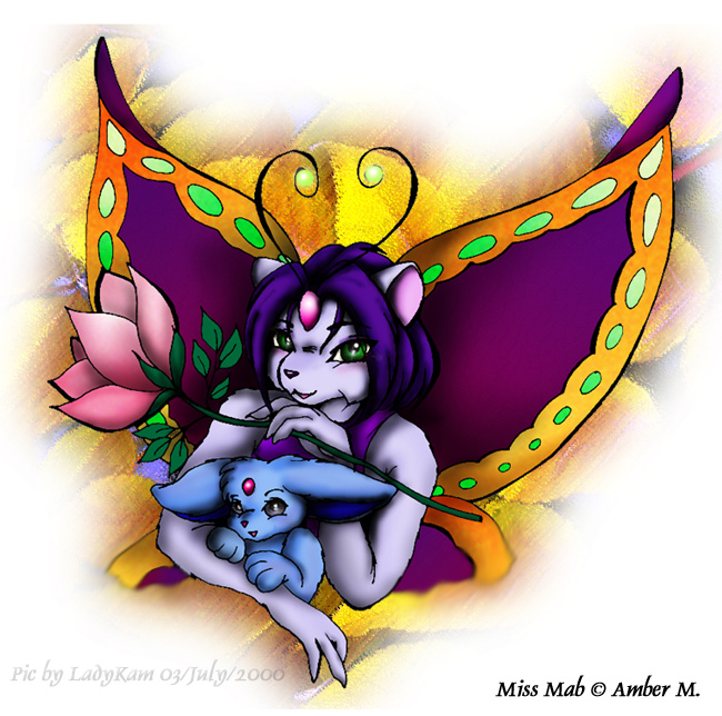 Name: Miss Mab Age: Unknown Gender: Female Species: Fae Furre Occupation: Being Herself Favorite Colour: Purple Favorite Food: Sugar Likes: Cute things, Sweet Things, Huggles, Friends, Fuzzies Dislikes: People yanking her antenni, Tastless Vulgar things. Special Abilities: Master of Convenience Best Trait: Friendly Worst Trait: Skitterish |