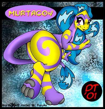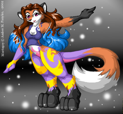| Pictures of Murtagoy by Me: Done in the year 2004 Murtagoy on the Move: Just a silly pose with a background, Murt is fun to draw at times just wacky. Done in the year 2003 Backies: Just a view of Murtagoy from behind as she looks at the boring background. Sex Bunnies: Cause sometimes...being sane is just not enough. Done in the year 2002 Jimmy: One of the more common variations of Murtagoys species, the non-shifting kind. Read-A-Book: Hooray for literacy! Demon: Murtagoy in a demon-form cause I thought it would be amusing to do so. Vixey: Murtagoy changing into a vixen-morph. Based off an old joke. Old Profile: Another old profile, this one with stats Done in the year 2001 and earlier Sleepy: I dont know where she got the doll from, but she sure is cute when asleep. First Impression: A duo of Murtagoy and Mikelo and their reactions when they first met. Tail Muncher: Murtagoy just being cute and silly as she gnaws on her tail. Watch Out: Murtagoy showing her observation skills to Unkno (character of SnowVixenSuki) Murtagoy Revised: My second attempt at Murtagoy...a little less surreal. Murtagoy Old: My first attempt at Murtagoy. Old Profile: The old profile image of Murtagoy Pictures of Murtagoy by Others: FoxxyVixen: First impressions are always a must in a crossover pic. Thanks Foxxy! Kim Ross: Kims wonderful half of an art trade, I really like the vibrant colours she uses. Shazzbaa: Murtagoy huggles! Eeee! I love ze huggle-pics! Aryanna: This has to be the cutest Murtagoy ever. I LOVE those toesies. Cute cute cute. Dark Tapai: A most LOVELY pic of Murtagoy, the colours are most nifty and her persona is well-done. |