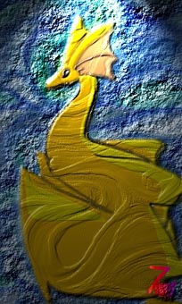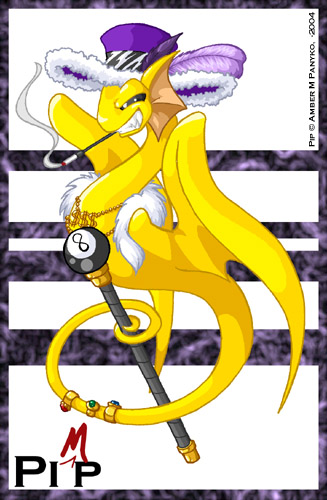Pip is quite the mystery player. He appears one day at the beach and soon after a strange chain of events start to occur. Quite the glutton, Pip tends to eat a good number of things and can almost be though of as spoiled. Pip himself is a drake, one of several siblings and seems quite adept at getting mischeif and trouble started. Its unknown if he is a good guy, a bad guy, or if he has any personal alteriors, but it is known that he has been assigned a task by some higher authorities and while its quite obvious he doesnt particularly favour the job, he is set out to do it. Appearing in and out of the planes of exsistance at whimsy, its beleived Pip, being of a draconic nature, is capable of traveling to the Odd-plane, a dimension whereas all draconic beings exsist outside of normal mainstream dimensions away from other creatures. Due to this, its unknown if the dragons left due to persecution, or if they were just being snobbish. Unable to talk vocally, Pips mental capacity is quite extraordinary and he's quite intelligent not to mention able to carry out a diverse array of magical abilities. He also seems to hold a bit of a dislike to Elementals, but that might be something instinctual. All in all, Pip seems to have a alot of answers to many questions...but fat chance he'll ever tell them unless its in his best interest to do so. After all, he's under orders, whatever those be. (SIDE NOTE: Please note that this version of Pip is NOT in accordance to the Pip of DMFA but is of a different story alltogether. In the scheme of things, Pip is to me like Cid is to Final Fantasy. He exsists in both.) |